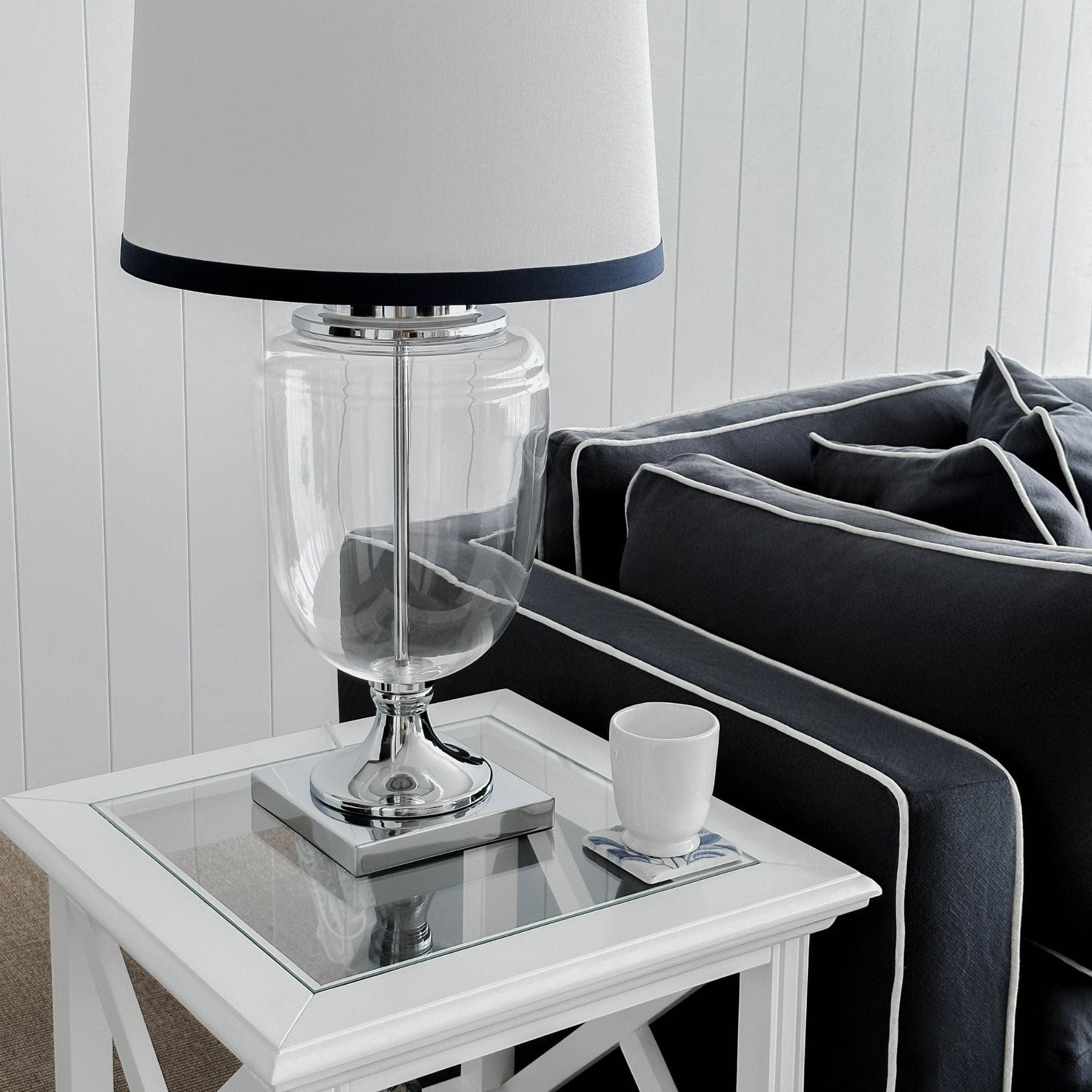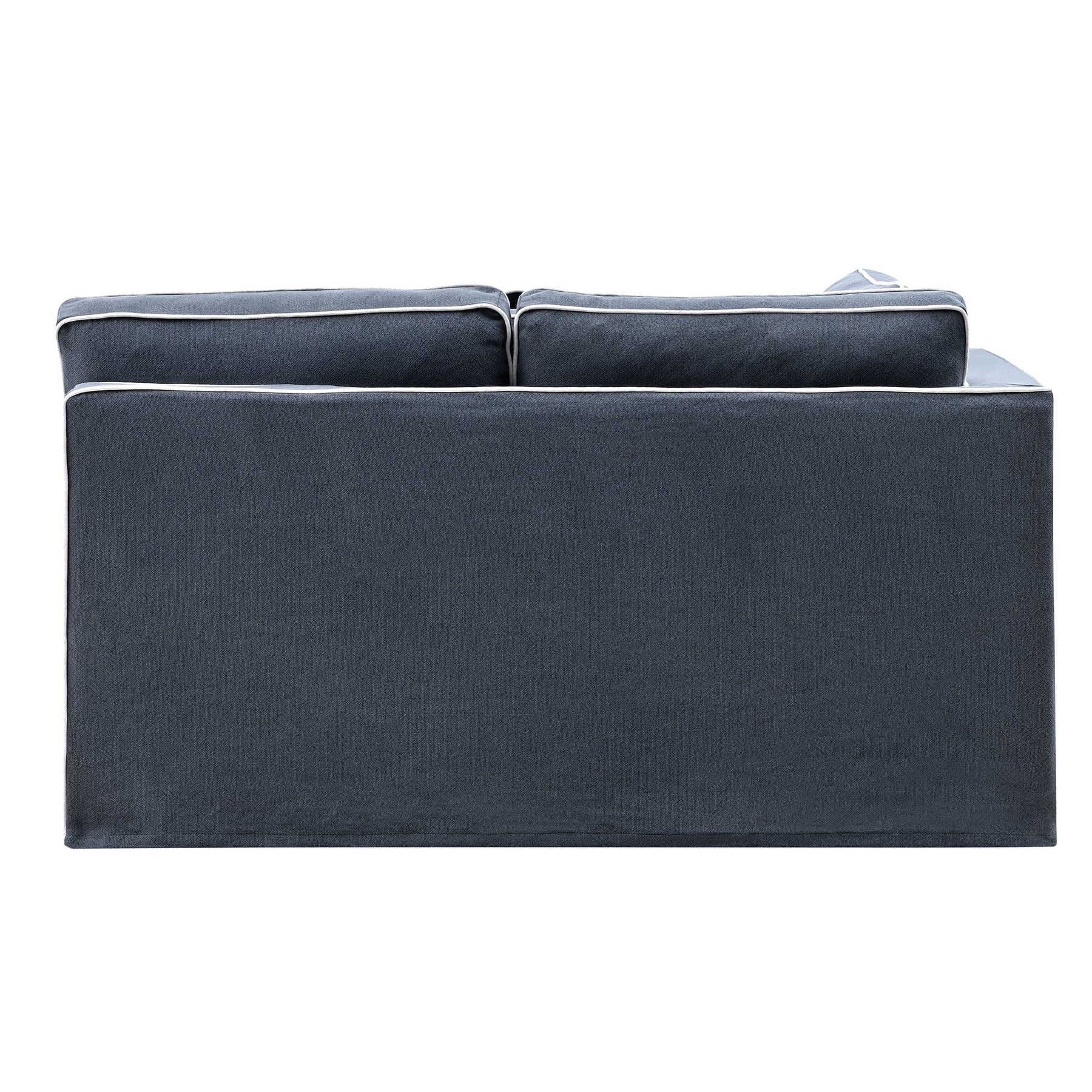 Dimensions: W150 D100 H85cm Product Weight : 4Kg Colour : Navy Base Fabric Material : 25% cotton, 75% Linen, Piping Material : 65% polyester, 27% viscose, 8% linen