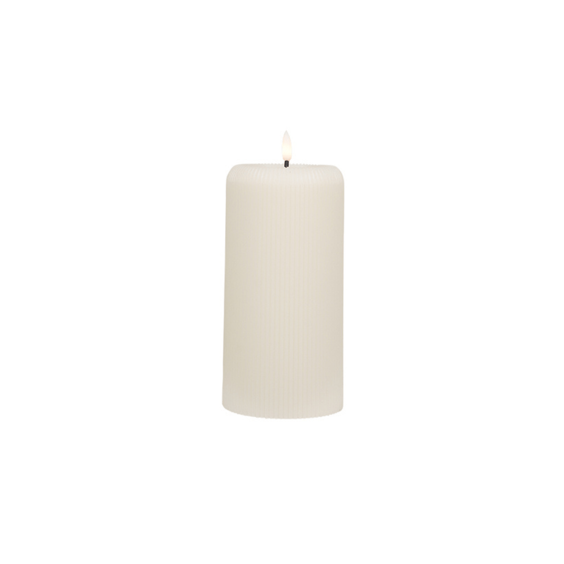 Medium Cream LED Ribbed Pillar Candle