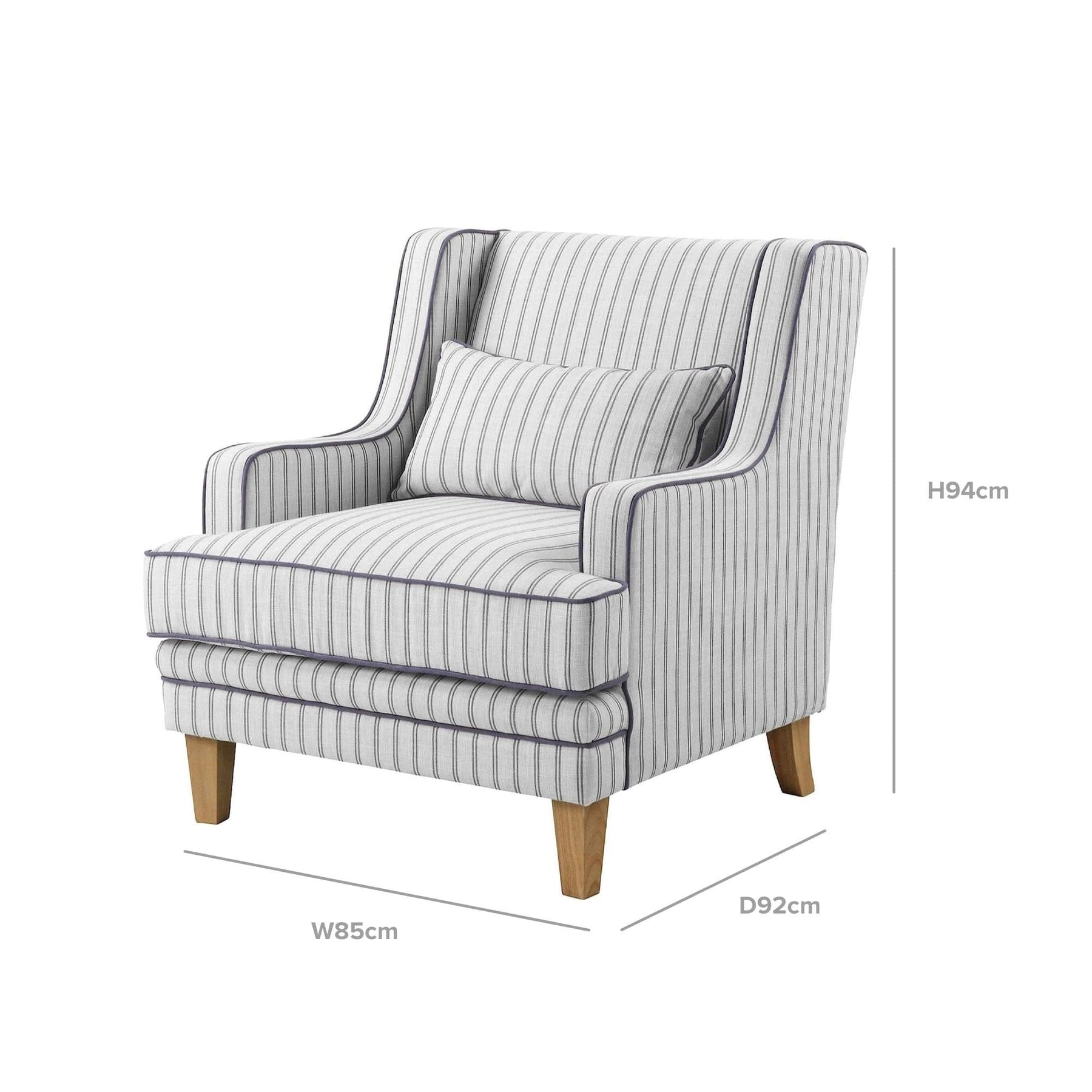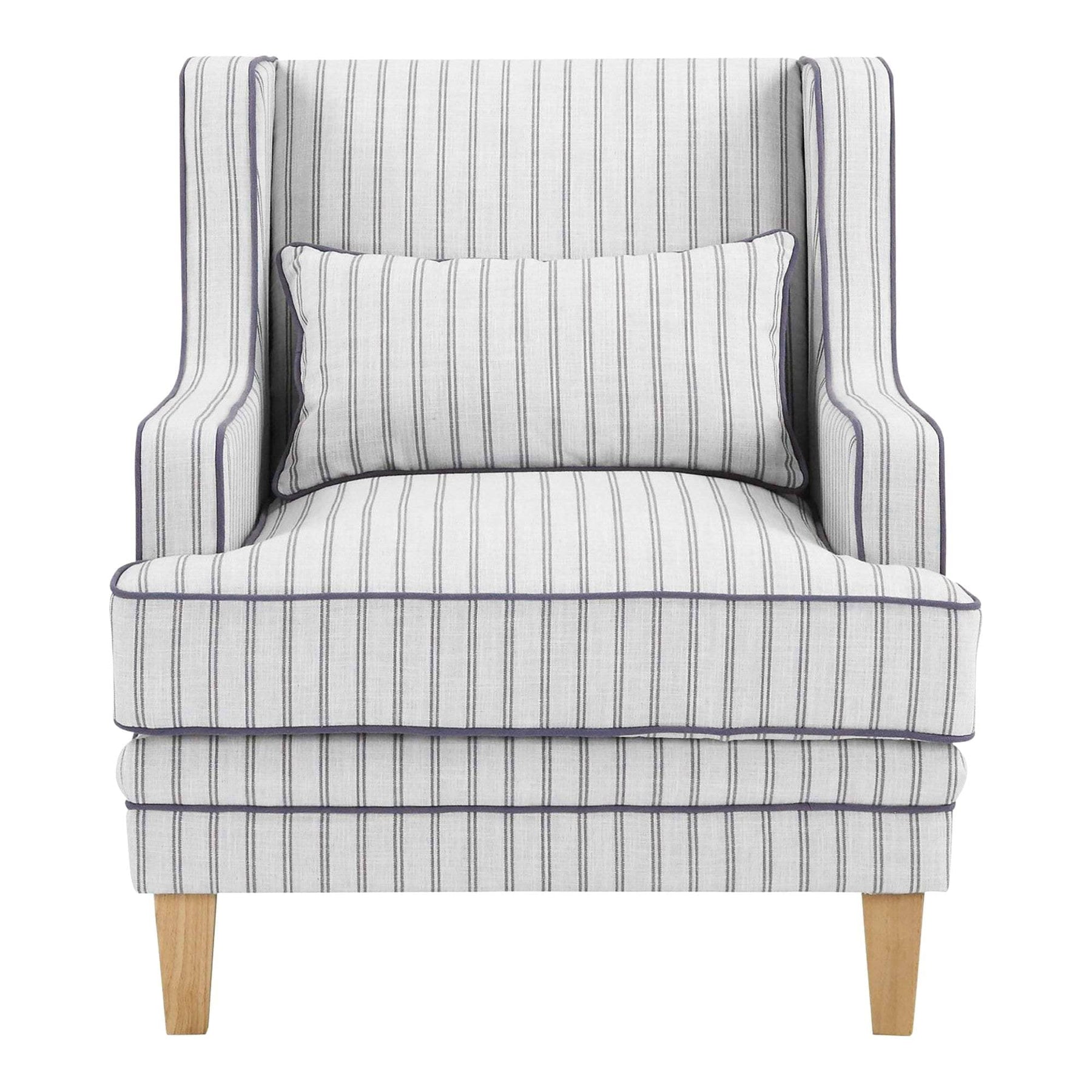 The Bondi range is effortless and chic. Sloping arms, fashionable blue and white pinstripe upholstery and neat details make for a thoughtful and contemporary design that is fitting for any home - beachside pad or otherwise. Shop for a matching set or mix and match your favourite fabrics for a unique