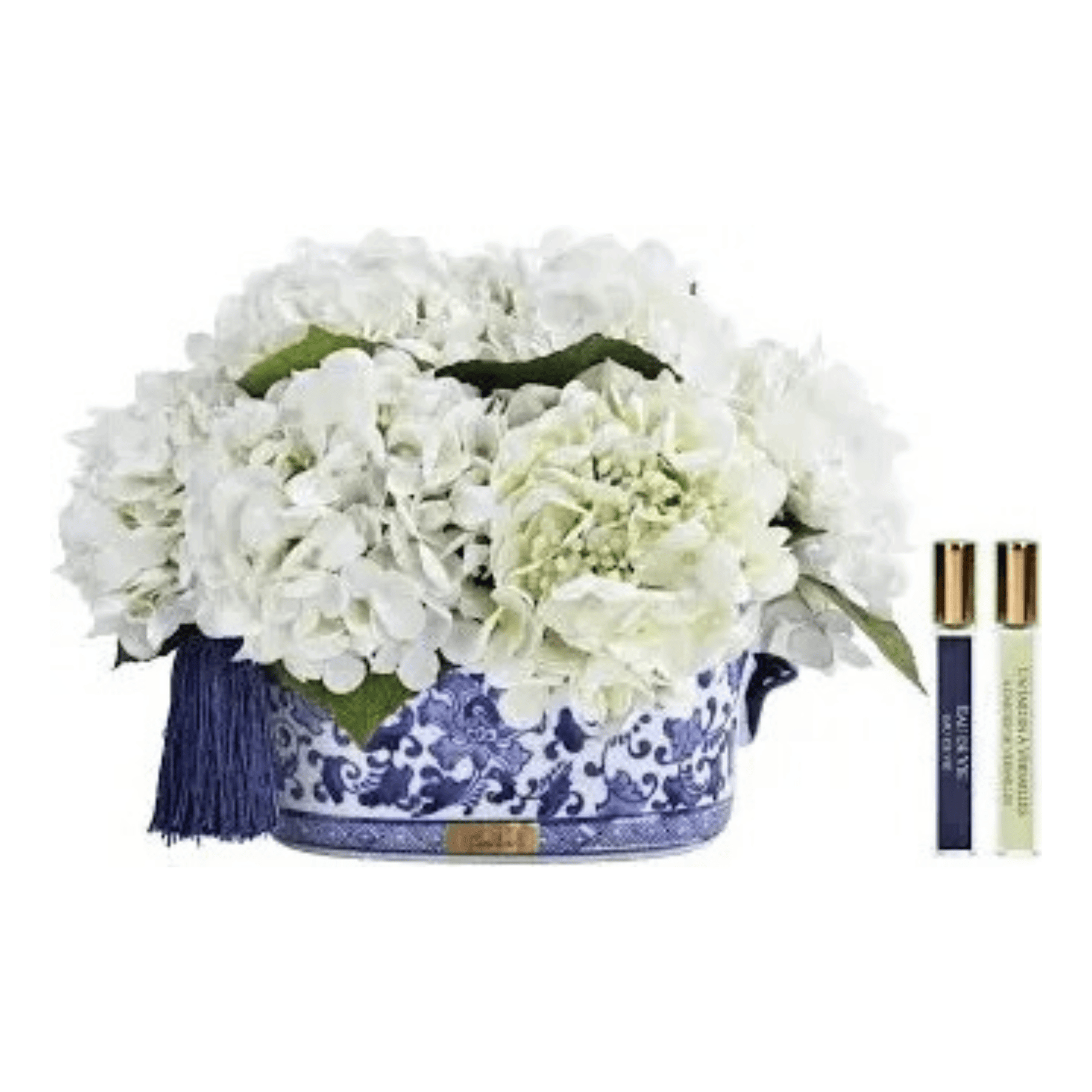 Cote Noire Ivory Hydrangeas in Blue & White Oblong Chinoiserie Pot